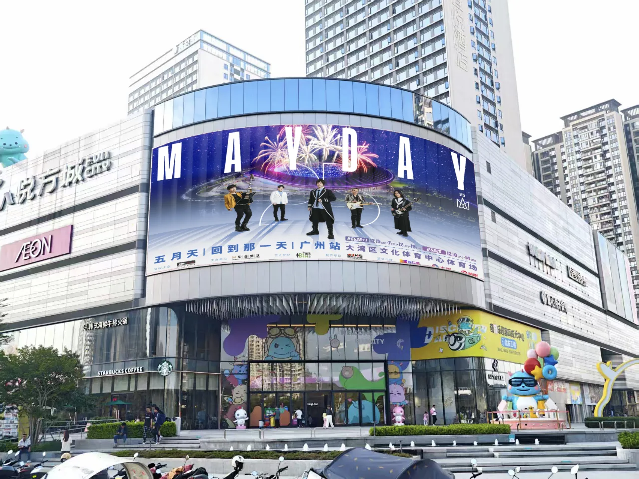 随着MAYDAYLAND广州站在中国铁建·南沙环宇城正式开业,南沙全区也进入了“五月天”时间!各大商场、写字楼纷纷通过户外大屏、楼宇外立面为五月天打call,整个南沙都成为五月天的应援现场。